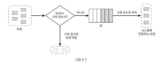 - 요청 처리율이 고정되어 있는 FIFO 큐